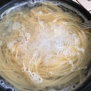 If you’re sticking to the 4 servings as indicated in the recipe, my method for quickly cooking spaghetti is perfect for this (directions below). If you plan to cook more than 8oz of spaghetti, then you’re better off cooking your pasta the normal way — in a large pot of boiling salted water.