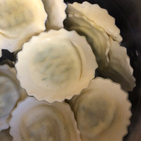 Cooking the ravioli and spinach. When draining the pasta and spinach, I like to use what's called a spider strainer, similar to this one. I can just transfer the food directly to the bowl this way. I also don't have to dirty a colander or make room in my sink to drain the water! Get yourself a spider. (Not an affiliate link because I'm not famous ... yet.)